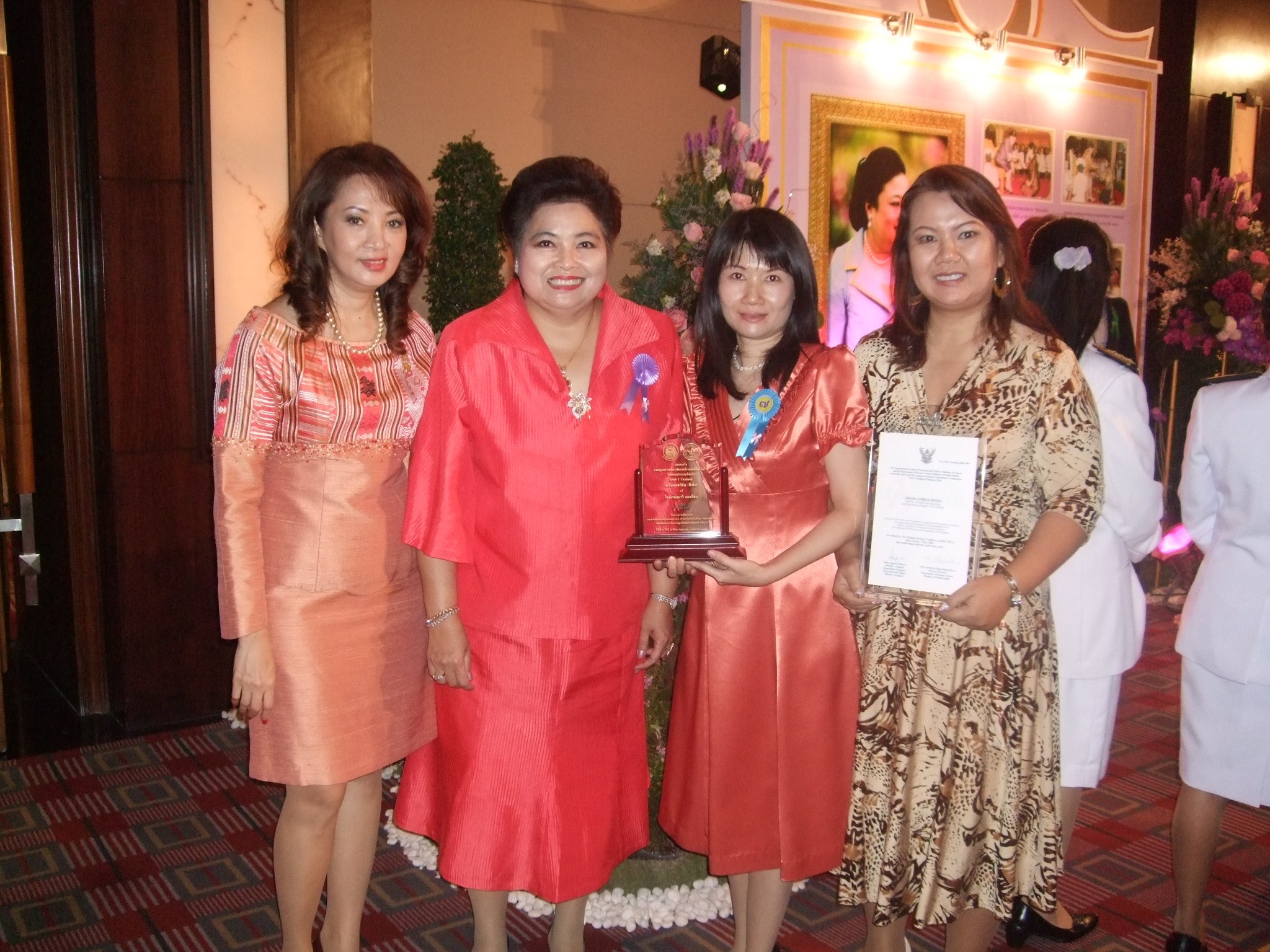 ASO-T Platinum Awards for Amari Atrium Hotel Bangkok , ThailandLa-orchit Ingcharoen-soontorn ; Director of Human Resource (3rd from left ) on behalf of the Amari Atrium Hotel, Bangkok received an “ ASO-T Thailand 2009 Platinum ” Awards ( AIDS and TB-response Standard Organization ) organized by Ministry of Labour and Ministry of Public Health coordinated with International Labour Organization ( ILO ) , The Global Fund To Fight AIDS , Tuberculosis and Malaria ( GFATM ) and Thailand Business Coalition on AIDS ( TBCA ) congratulated by Nichaya Chaivisuth, Saisom Wongsasulak and Sutanant Daorerk.Photo Show : ( from left ) Ms Nichaya Chaivisuth , Mrs Saisom Wongsasulak , Ms La-orchit and Ms Sutanant Daorerk.