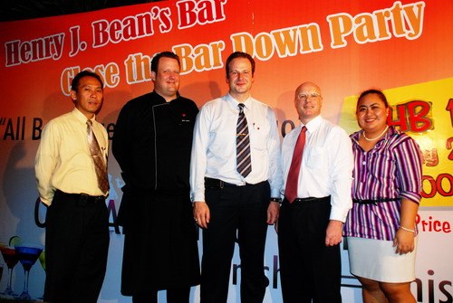 ‘Close The Bar Down Party’ At Henry J. Bean’s Bar & GrillThe management of The Amari Orchid Pattaya had one last picture in front to Henry J Beans Bar & Grill prior to the party to celebrate its closing after 12 years of service to the town. Following a period of renovation, The Tavern pub and sports bar will be opening.left to right: Khun Boonchai Iawsajjanurak, Food and Beverage Manager, Amari Orchid Pattaya. Mr. Jens Heier, Executive Chef, Amari Orchid Pattaya Mr. Max Sieracki, Resident Manager, Amari Orchid Pattaya Mr. David Cumming, General Manager, Amari Orchid Pattaya Khun Narisa Nitikarn, Public Relation Officer, Amari Orchid Pattaya