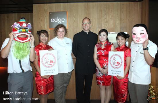 Hilton Pattaya Launches Chinese Guest Service Program ‘Hilton Huanying’PATTAYA, Thailand – 23 January 2012 – Hilton Pattaya today kicked off its celebration of the Chinese New Year at all-day dining restaurant, Edge, in addition to core Hilton Huanying services and amenities, introduced by Hilton in the summer of 2011.Hilton Huanying extends an authentic welcome through amenities, service standards and dedicated Hilton team member training. Chinese travelers find familiar comforts in the arrival, guest room and Breakfast at Hilton experiences. Hilton Huanying include: a front desk team member fluent in Mandarin; a selection of Chinese tea upon request, tea kettles, slippers and a dedicated television channel with Chinese programming; and authentic breakfast items including congee, dim sum, fried rice and noodles. Pictured above with Hilton Huanying team: Ms. Peta Ruiter, Director of Business Development, Hilton Pattaya (3rd left), Mr. Harald Feurstein, General Manager, Hilton Pattaya (4th left) and Ms. Chang Chang (Nikki), Chinese Guest Relations Officer, Hilton Pattaya (3rd right)
