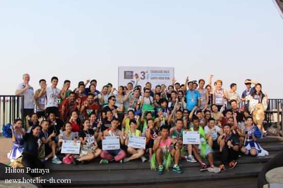 Hilton Pattaya Stages The 3rd Staircase Race - Earth Hour Run To Raise Energy Saving and Earth HourAs part in Earth Hour 2016, Hilton Pattaya led by Rudolf Troestler, general manager organized the 3rd Staircase Race Earth Hour Run for creating energy saving awareness amongst team members by reducing the usage of elevator. The event was held on March 16, 2016 at welcome lobby.“The third staircase race from level 1 to level 34 was intended to encourage the use of stair instead of lifts when necessary for energy saving. More than 100 team member participate kick-off the hotel’s annual Earth Hour Activities. Additionally, this activity could able to create a team work and entertainment to the team members,” said Rudolf. Hilton Pattaya’s staircase race was named the only vertical staircase run in Pattaya City. This race was separate into a team of five, individual female and individual male as well as costume competition. And the fastest runner of the race spent only 5.45 minutes for 34 floors or 660 steps.