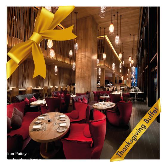 Thanksgiving lunch & dinner buffet at edge restaurantJoin us in edge restaurant for your family thanksgiving celebration. Enjoy our delicious Thanksgiving buffet, featuring family-style roasted turkey and many traditional Thanksgiving favorites that the whole family can enjoy while watching our breathtaking view of the Pattaya bay, all at an amazing value.Lunch: THB 520 nett per person, from 12 noon – 2.30 pm Dinner: THB 960 nett per person, from 6 pm – 10.30 pm Available through November 26, 2015 only! For more information or to reserve, please call 038 253 000. Post Date: Wed, 25 Nov 2015 17:43:54 +0700 |