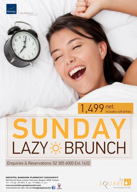 Lazing, and Dining, on a Sunday AfternoonSundays are for waking up late and enjoying life in the slow lane. So don’t hurry, but definitely don’t miss, Sunday Lazy Brunch at The SQUARE, Novotel Bangkok Ploenchit Sukhumvit. Guests have three and a half hours, from 11.30 a.m. to 3.00 p.m., to savour a true weekend highlight.On the buffet are Western favourites like foie gras, roasts and pasta; Asian cuisines including dishes such as Japanese sushi and sashimi; and a selection of Indian curries. Buffets at The SQUARE are known for great seafood and Sunday brunch is no different. Premium delicacies include rock lobster, Alaska king crab, mussel, oyster and blue crab, all served on ice or grilled over charcoal flame at The SQUARE’s live kitchen. Thai favourites include rice with red pork and chicken rice. Tempting desserts await too like cakes, ice cream and Thai desserts. Sunday Lazy Brunch also features new alcoholic drink choices, wine and draught beer is priced at THB 1,499 net per person, children under 12 receive 50% discount, under 6 free of charge. Holders of selected credit cards eligible for Come-2-Pay-1 offer, making The SQUARE’s Sunday Lazy Brunch one of the best-value brunch buffets in town. Accor Advantage Plus members receive up to 50% discount on group booking up to six persons. Sunday Lazy Brunch at The SQUARE Restaurant Date: Every Sunday Time: 11.30 a.m. to 3.00 p.m. Price: THB 1,499 net per person including free flow soft drinks, wine and draught beer (Price includes 10% service charge and prevailing government VAT) - Children under 12 receive 50% discount, under 6 free of charge. Reservation: 02 305 6000 ext. 1632 Website: www.novotelbangkokploenchit.com/special-offers/the-square/