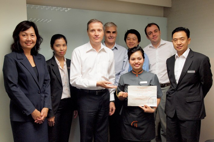 EMPLOYEE OF THE YEARPullman Bangkok King Power recently named Employee of the Year at its annual awards presentation. Mr. Marc Begassat was pleased to announce and presented a certificate to Ms. Thanaphon Inmadan, Public Area Attendant as Employee of the Year who had been honoured on her work performance and great loyalty when she recently collected 100,000 Thai Baht cash and returned to the guest.Post Date: Fri, 14 Oct 2011 09:53:18 +0700 |