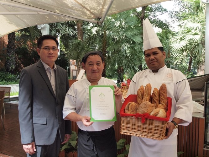 Pullman Bangkok King Power earned a certificate hygiene and safety of pastry kitchen from DepartmentDirekrat Hongsakula (from left), Food & Beverage Operations Director together with Arun Singmanee (from right), Executive Sours Chef congrats to Suprachai Panpop (middle), in occasion of earning a certificate hygiene and safety of pastry kitchen from Department of Health, under Health Ministry.| สำนักอนามัยมอบใบประกาศเกียรติคุณแก่โรงแรมพูลแมน คิง เพาเวอร์ กรุงเทพ | | ดิเรกรัตน์ หงสกุล (คนแรกจากซ้าย) ผู้อำนวยการฝ่ายอาหารและเครื่องดื่ม พร้อมด้วย อรุณ สิงห์มณี(คนแรกจากขวา) รองพ่อครัวใหญ่ ร่วมแสดงความยินดีกับ ศุภชัย แผ่นภพ (คนกลาง) ผู้ช่วยรองพ่อครัวใหญ่ ในโอกาสได้รับใบประกาศเกียรติคุณ เพื่อแสดงว่า โรงแรมฯ ผ่านเกณฑ์สุขลักษณะที่ดีสถานที่ผลิตอาหาร ประเภท การทำขนมปังสด ขนมปังแห้ง จันอับ ขนมเป๊ยะโดยโครงการนี้ ทางสำนักอนามัยเตรียมขยายผลให้ได้มาตรฐานทั่งกรุง รองรับการเข้าสู่ประชาคมเศรษฐกิจอาเซียน |