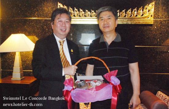 Celebrates 100th Room NightsMr. Paul Wong, General Manager of Swissotel Le Concorde Bangkokcongrats to Mr. Sung-Sik Yang, Korean, to celebrate for 1st person to reach 100th Room Nights in 2011 under Exclusive Loyalty Programme and gave him the Souvenirs with Complimentary Voucher for Room Night at Swissotel Le Concorde Bangkok, recently.| ฉลอง 100 รูมไนท์ | | มร. พอล หว่อง ผู้จัดการทั่วไป โรงแรมสวิสโฮเต็ล เลอ คองคอร์ด กรุงเทพฯ มอบกระเช้าของที่ระลึกพร้อมบัตรสมนาคุณห้องพักสุดหรูเพื่อแสดงความขอบคุณแก่ มร. สตีฟ ยาง ชาวเกาหลีใต้ในโอกาสที่เข้าพักที่โรงแรมรวมกันเป็นเวลาครบ 100 คืนภายในปี 2554 ซึ่งถือเป็นคนแรกที่ได้รับสิทธิ์พิเศษตามเงื่อนไขของ Exclusive Loyalty Programme ด้วยความประทับใจ ที่ โรงแรมสวิสโฮเต็ล เลอ คองคอร์ด กรุงเทพฯ เมื่อเร็วๆ นี้ |