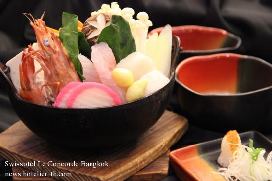 JAPANESE STYLE SEAFOOD DISHES - TAKUMIBANGKOK, JUNE – Throughout June, Takumi Japanese Restaurant at Swissôtel Le Concorde, Bangkok is offering a unique fusion of “Japanese Style” seafood dishes.Takumi has two exciting recommendations to offer this June. Enjoy the two menus including Komoku Chirashi, sliced fish on sushi rice at an attractive price of THB 280 net only. Or Yose Nabe, hot pot seafood at THB 320 net only. These unique fusion dishes are only available for a limited time. So hurry and come enjoy the tempting varieties dishes available only until June 30, 2013. Also available daily is our ever-popular All-You-Can-Eat a-la-carte lunch and dinner buffet with over 100 varieties to choose from. For more information and reservation please call +662 694 2222 ext 1560. Takumi is located on the ground floor of Swissôtel Le Concorde Bangkok. Takumi hours of operation: lunch 11.30 – 14.30 pm and dinner 6.00 pm – 10.30 pm.