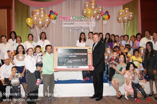 SHARING LOVE TO CHILDRENMr.Thomas Reupke, General Manager of Swissôtel Le Concorde Bangkok welcomed children from the “Phayathai Home for Babies” for a warm and fun-filled lunch to celebrate the joys of Children’s Day 2015. The little children together with their guardians enjoyed to share things with cheerful activity and affections of the hotel staff.The hotel donated a 42-inch LCD TV to use for educational benefits for children, including gave Teddy Bear Dolls for a impressive gift to all children from the Phayathai Home for Babies with the satisfied for them.