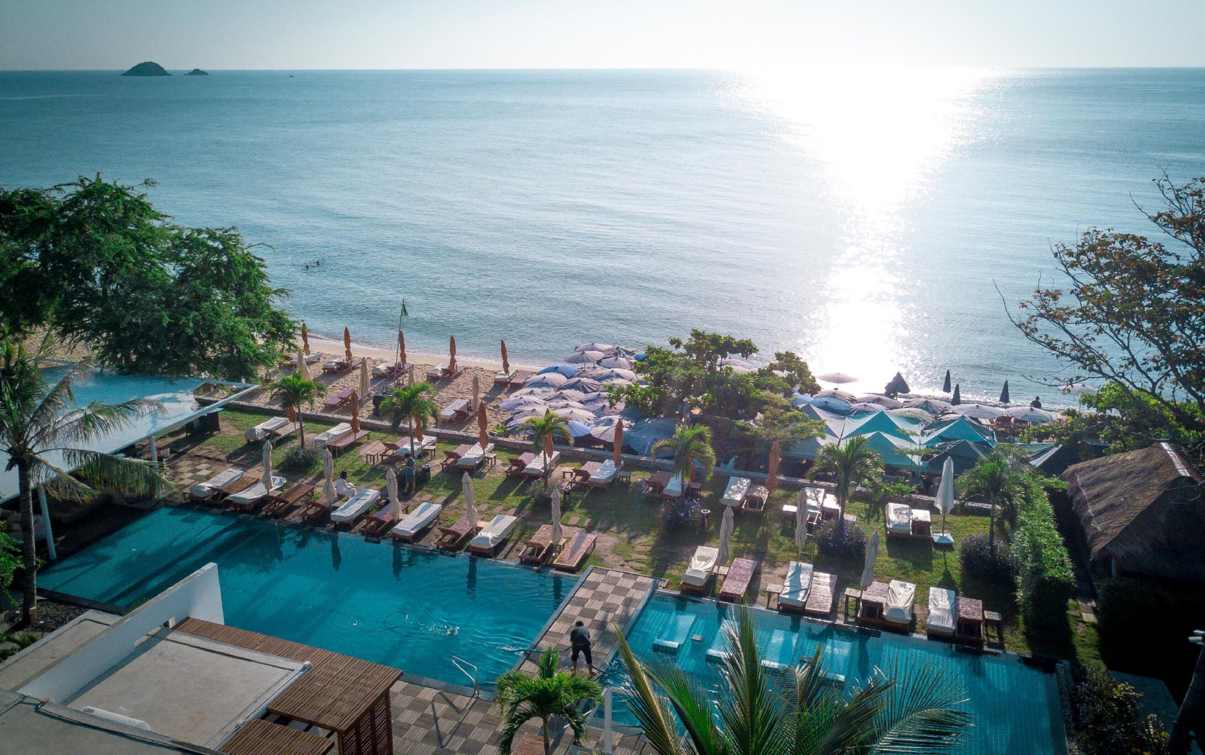 Located close to Khao Takiab Temple and Cicada Market, Sanae Beach Hua Hin provides a poolside bar, a grocery/convenience store, and a terrace. With a beachfront location, beachfront dining, and sun loungers, this hotel is the perfect place to soak up some sun. Treat yourself to spa services, such as a Thai massage, aromatherapy, or reflexology. The on-site restaurant offers breakfast, lunch, dinner, and light fare. Stay connected with free in-room WiFi, and guests can find other amenities such as a garden and dry cleaning/laundry services. Additional perks include: - An outdoor pool and a children's pool, with sun loungers and pool umbrellas - Free self parking - A roundtrip airport shuttle (surcharge), wedding services, and luggage storage - A water dispenser, ATM/banking services, and multilingual staff Room features All guestrooms at Sanae Beach Hua Hin include comforts such as pillow menus and air conditioning, in addition to perks like separate sitting areas and bathrobes. Other conveniences in all rooms include: - Bathrooms with showers and free toiletries - 48-inch LCD TVs with cable channels - Balconies or patios, separate sitting areas, and refrigerators Languages English, French, German, Italian, Thai Location Map: /sanae-beach-hua-hin/map |