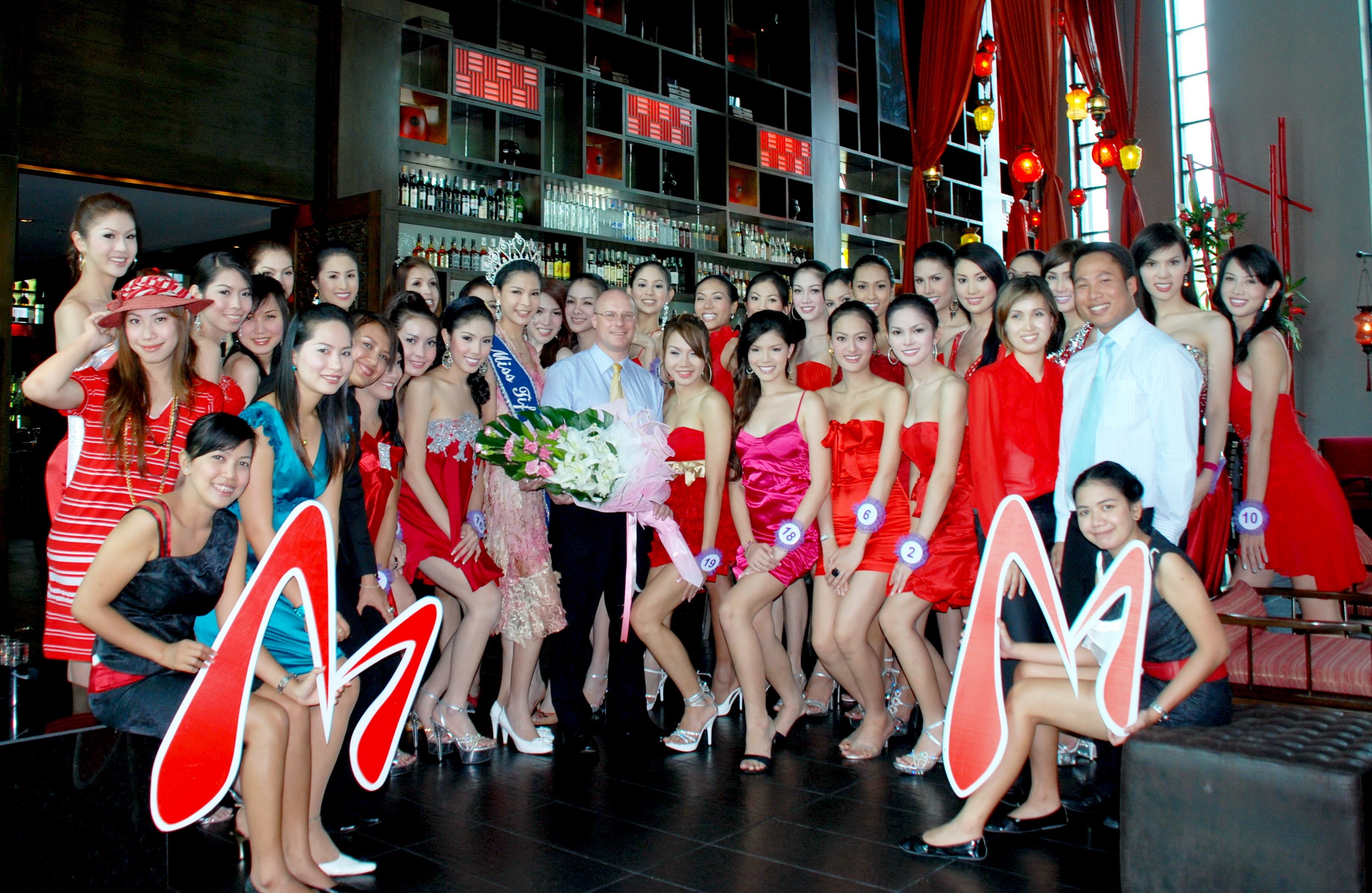 Miss Tiffany’s Universe 2009 at Mantra Restaurant & Bar, PattayaKhun Kangsadarn ‘Nong Kwang’ Wongdusadeekul (centre with crown), Miss Tiffany's Universe 2008, together with 30 final-round contestants of Miss Tiffany's Universe 2009, were warmly welcomed for a fabulous meal at Mantra Restaurant & Bar, by David Cumming (centre with bouquet), General Manager of Amari Orchid Resort & Tower, and Dhaninrat Klinhom, Director of PR (1st right, standing, front row).| 30 ผู้เข้าประกวดมิสทิฟฟานี่ ยูนิเวิร์ส 2552 ณ ห้องอาหารและบาร์มันตรา | | เมื่อเร็วๆนี้ ผู้เข้าร่วมประกวดมิสทิฟฟานี่ ยูนิเวิร์ส ประจำปี 2552 จำนวน 30 ท่าน พร้อมด้วยมิสทิฟฟานี่ ยูนิเวิร์สปีล่าสุด คุณโหน่ง กังสดาล วงศ์ดุษฎีกุล (กลางสวมมงกุฎ) เข้ารับประทานอาหาร พร้อมทำกิจกรรมการประกวดร่วมกัน ณ ห้องอาหารและบาร์มันตรา โดยมีมร.เดวิด คัมมิ่ง ผู้จัดการทั่วไป (กลาง) และธนินช์รัฐ กลิ่นหอม ผู้อำนวยการฝ่ายประชาสัมพันธ์ (ที่ 1 ขวา ยืน แถวหน้า) คอยให้การต้อนรับอย่างอบอุ่น |