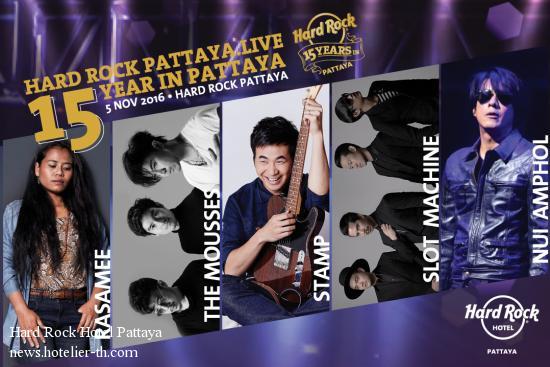 Hard Rock Hotel Pattaya is delighted to announce its 15th Anniversary with “HARD ROCK PATTAYA. LIVE.HARD ROCK PATTAYA. LIVE.15th Anniversary Concert of Hard Rock Hotel Pattaya Hard Rock Hotel Pattaya is delighted to announce its 15th Anniversary with “HARD ROCK PATTAYA. LIVE.” concert on Saturday, November 5, 2016 at the hotel during 6pm – midnight. Featuring the very best Thai artists including; • Rasamee Isan Soul; renowned singer/song writer from North-East Thailand. Her music is a unique mixture of traditional Mor lam-Jariang and Soul. Rasamee calls her singing style “Isan Soul” • The Mousses; Thai Pop and teenage icons; well known for their hit songs Jeb Tee Tong Roo, Namta Tee Hai and their latest hit “Mai Pen Rai”. • Stamp Apiwat; famous Thai Pop Singer/Songwriter and coach on the high-rating TV show, The Voice. Stamp is recognized for his impressive performances, featuring vocals that are unsurpassed. • Slot Machine; Thailand’s greatest Rock Band now together for 10 years, Their fifth album, ‘Rainbow’ includes the hits ‘Rung’ (Rainbow) and ‘Khloem’ which has had over 62 million hits on YouTube. The band was also recently awarded the prestigious “Prudential Eye Award”. • Nui Amphol; Nui well known for his hit “Right Handed Rocker” and lead singer of the Thai Rock band, “Micro”, now embarking on a solo career, his enthusiastic performances in the 80s and 90s are legendary. • DJ Gramophone Children; Bangkok based electro-funk artist from Thailand's Kitsch Cat Records. Tickets Prices: • Early Bird (until October 10, 2016) Bht. 1,300 net including 1 soft drink • Normal Prices : Bht. 1,500 net including 1 soft drink *Part of Proceeds from the concert will be donate to the hotel’s charity projects including; H.R.H Princess Maha Chakri Sirindhorn Charity Fund to help Thai people improve their living conditions and standard of education, the project also include programs to assist the Thai youth in remote areas of the country, Hard Rock Heals Foundation; Hard Rock’s Global charity that aims to improve lives through the power of music, Rock The School; A program to support school students in Grade 7 through to grade 12 (Age 13-18) from low income backgrounds by granting funds for their education through a committee formed by the hotel executives and school officials, Rock The Lunch; The hotel’s Monthly activity to visit the selected school which have a limited budget for children’s meals to host them lunch and Rock The Farm; the hotel’s Green initiative according to Hard Rock’s Motto, Save the Planet. Join us to rock your heart out and celebrate Hard Rock Hotel Pattaya’s 15th Anniversary. For more information, ticket & room package’s booking, please call 038 428 755 or visit pattaya.hardrockhotels.net or www.thaiticketmajor.com