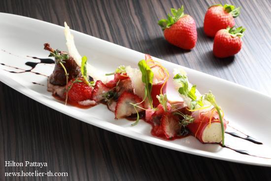 Experience the Tasty Dishes from the Ingredient of the Month ‘Strawberry’ at Hilton PattayaHilton Pattaya invites you to experience the tasty dishes featuring strawberry, the signature fruit of winter, available at Drift, Shore and Horizon throughout this December only.Strawberry is a rich source of vitamins, fiber and polyphenols, also is the low calories fruit that sodium-free, fat-free and cholesterol-free. It also can protect the heart disease and reduce the risk of stroke. ‘Drift’ invites you to savor several tasty strawberry desserts. We use fresh strawberry to make all of desserts including Strawberry Peach Melba, Pistachio Strawberry Cake, Strawberry Cheese Cake, White Chocolate and Lemon Panna Cotta with Strawberry and Strawberry Macaron. The price starts from THB 130 nett. Available every day at Drift on level 16 from 11am – 11pm. ‘Horizon’ presents the creative menu ‘Quail, Foie Gras and Strawberry’, the main ingredients are quail, foie gras, and fresh strawberry. It is the best experience that tastes fresh creative dishes with the spectacular view of Pattaya bay. The price is at THB 750 nett. Available daily at Horizon rooftop restaurant & bar on level 34 from 6pm- 11pm. Pay a visit to ‘Shore’, and taste the fresh Strawberry and Spinach Salad. The main ingredients are fresh strawberry, spinach, smoked chicken, sunflower seeds and passion fruit sauce. It is the best choice to have this special dish at infinity pool. The price is at THB 500 nett. Available daily at Shore on level 16 from 9am- 8pm. For more information or reservation, please contact +66 (0)38 253 000 or bkkhp_fb@hilton.com or pattaya.hilton.com