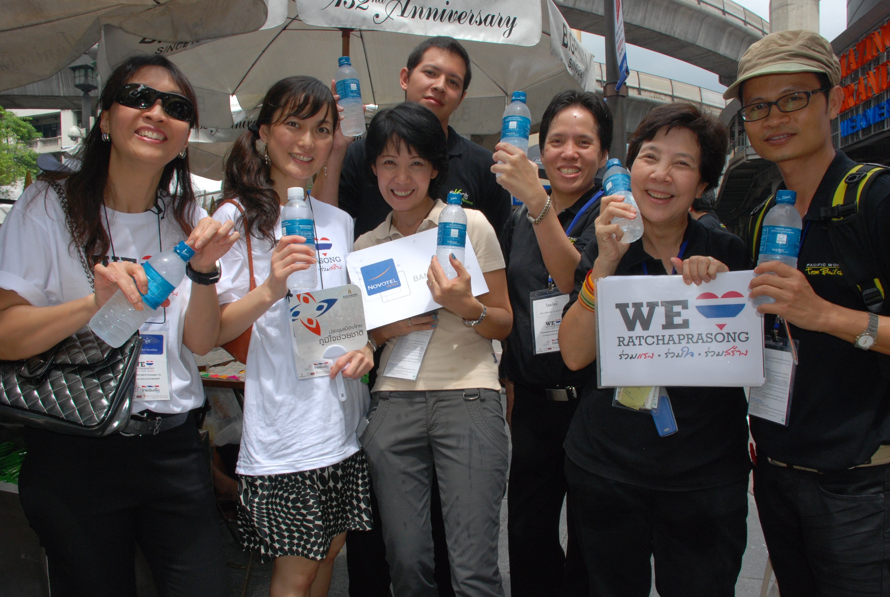 We Love RatchaprasongJarunun Sripromma, Assistant Director of Sales of Novotel Bangkok on Siam Square had contributed 400 bottles of drinking water to the recent activities organized to rehabilitate the Ratchaprasong intersection and invited 100 MICE organizers from various countries to participate in these Fam Trip. These events were coordinated by TCEB and Pacific World Travel Agent.| ร่วมแรง...ร่วมใจ..ร่วมสร้าง | | จารุนันท์ ศรีพรหมมา ผู้ช่วยผู้อำนวยการฝ่ายการตลาดโรงแรมโนโวเทล กรุงเทพ สยามสแควร์ เป็นตัวแทนร่วมบริจาคน้ำดื่มจำนวนกว่า 400 ขวด ให้กับกลุ่มสมาชิกไมซ์ กว่า 100 แห่ง ที่เข้าร่วมกิจกรรม Fam Trip ส่งเสริมตลาดไมซ์ในประเทศ กิจกรรมนี้จัดโดย สสปน. และ แปซิฟิค เวิร์ด แทรเวล เอเจ้นท์ ณ บริเวณย่านราชประสงค์ |
