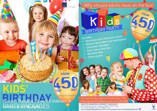 WHY SHOULD ADULTS HAVE ALL THE FUN! Kids’ Party Package at Novotel Bangkok Ploenchit SukhumvitThe ‘Family & Novotel’ concept means children are very special guests at every Novotel around the world. In fact ensuring that families share wonderful moments together is a priority.In that light Novotel Bangkok Ploenchit Sukhumvit is the perfect place to celebrate a special moment with the entire family. The hotel’s new Kids’ Party Package has something to put a smile on everyone’s faces – Mom, Dad and all the kids – with terrific three-hour parties filled with fun activities and great food. It’s a great way to celebrate a birthday as well as any other special occasion for the little ones. Indeed, Kids’ Party Package will make for very happy families. Among base package amenities are colourful themed settings with balloons and table centrepieces. Of course there’s also lots of great food with special kids’ menus. Additional highlights and activities at extra charge include bouncy castles and other fun toys, along with mascot appearances, magic shows and games featuring surprise gifts for all. Kids’ Party Package base price: THB 450 net per person, minimum 30 persons (adults and children). Available now to 30 September 2015. Novotel Bangkok Ploenchit Sukhumvit’s convenient location next to Ploenchit BTS SkyTrain station, furthermore, makes getting to the party very easy. For more information please contact tel: 02-305 6000 ext. 1232 or e-mail: H7176-SL13@accor.com. Kids’ Party Package at Novotel Bangkok Ploenchit Sukhumvit Price: THB 450 net, minimum 30 persons (adults and children) Extra charge applies for parties scheduled as part of Sunday Brunch Duration: 3 hours Availability: Now to 30 September 2015 Reservation: 02 305 6000 ext. 1232 or e-mail: H7176-SL13@accor.com. Website: www.novotelbangkokploenchit.com