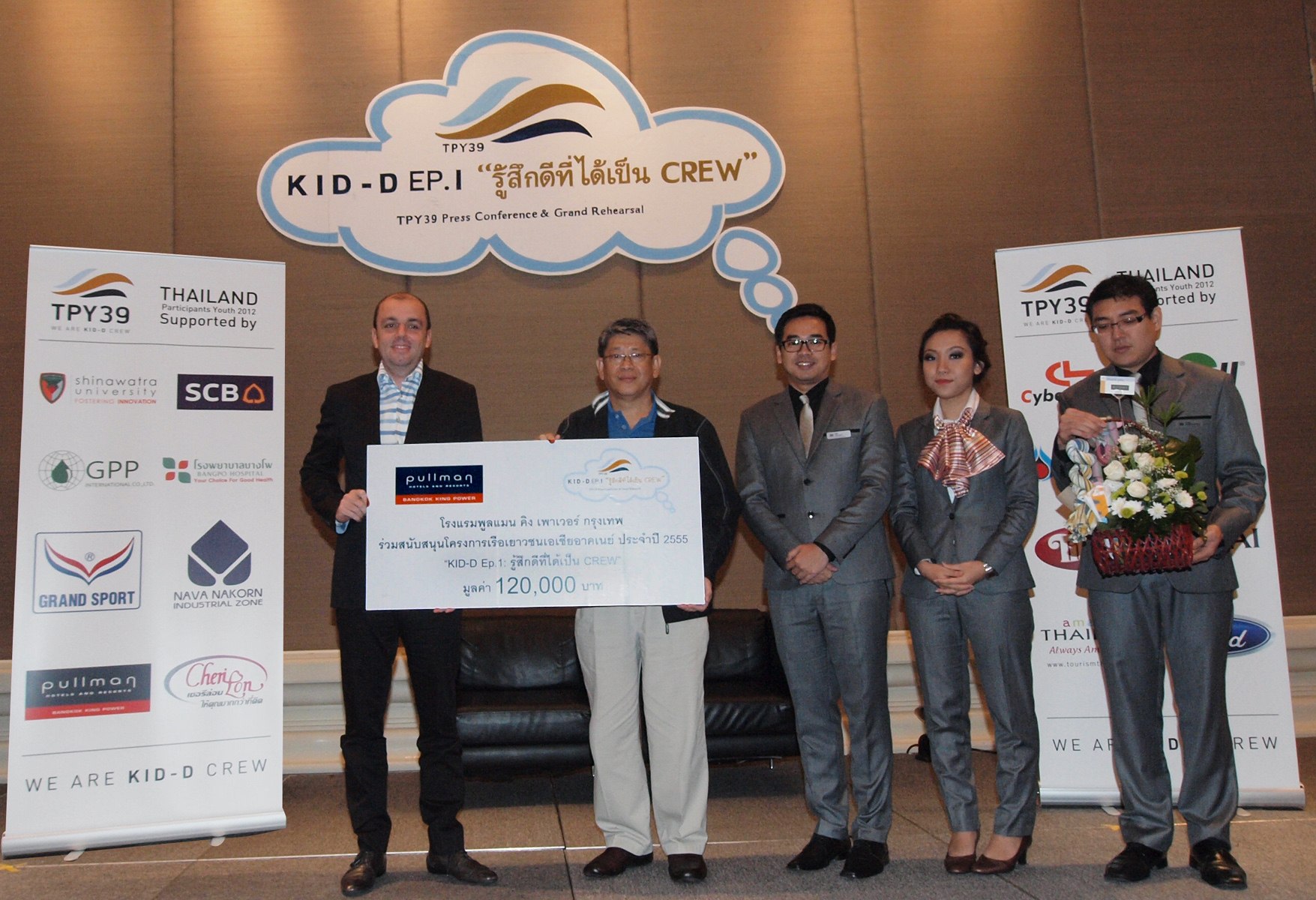 Learning Support by Pullman Bangkok King PowerBertrand Dugast (left), Operations Director of Pullman Bangkok King Power representative supported supplies and location for press conference of Ship for Southeast Asian Youth Program 2012 ‘TPY39 WE ARE KID-D CREW’ to Chai Nimakorn (2nd from left) President of Association of the Ship for Southeast Asian Youth of Thailand at Infinity Ballroom, Pullman Bangkok King Power.| โรงแรมพูลแมน คิง เพาเวอร์ กรุงเทพมอบเงินสนับสนุน โครงการเรือเยาวชนเอเชียอาคเนย์ประจำปี 2555 | | มร.แบร์ทรองด์ ดูกาสท์ (ซ้ายสุด) ผู้อำนวยการฝ่ายปฏิบัติการ โรงแรมพูลแมน คิง เพาเวอร์กรุงเทพ เป็นตัวแทนมอบสิ่งของอำนวยความสะดวกพร้อมเอื้อเฝื้อสถานที่ในการจัดสนับสนุนโครงการเรือเยาวชนเอเชียอาคเนย์ประจำปี 2555 ภายใต้ชื่องาน “KID-D Ep.1: รู้สึกดีที่ได้เป็น CREW” โดยมี ชัย นิมากร (ที่ 2 จากซ้าย) นายกสมาคมเรือเยาวชนเอเชียอาคเนย์แห่งประเทศไทย เป็นตัวแทนรับมอบ ณ ห้องอินฟินิตี้ บอลรูม โรงแรมพูลแมน คิง เพาเวอร์ กรุงเทพ |
