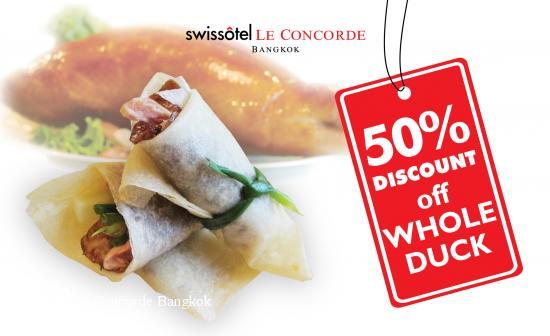 IRRISITABLE Peking DuckChinese Delicacy – Easy PayVisit Swissotel Le Concorde Bangkok’s Chinese restaurant, Loong Foong, from now until 10 August 2012 to discover a flavor of Peking Duck, from Monday to Friday, lunch or dinner for only THB 514 net (half off it’s regular price!). Step into our authentic Chinese Restaurant – Loong Foong with the capacity to seat 118 guests, which guarantees to indulge you with real traditional Cantonese delicacy! Also, don’t forget to try our All-You-Can-Eat A-La-Cart Buffet for only THB 635 net! And for your sweet tooth, try our famous chilled mango pudding or sweetened water chestnut cream. Loong Foong Chinese Restaurant opens daily for lunch from 11.30 am. - 2.30 pm. and dinner from 6.00 pm. - 10.30 pm. For more information and reservations, please call 02 694 2222 ext.1540-1.