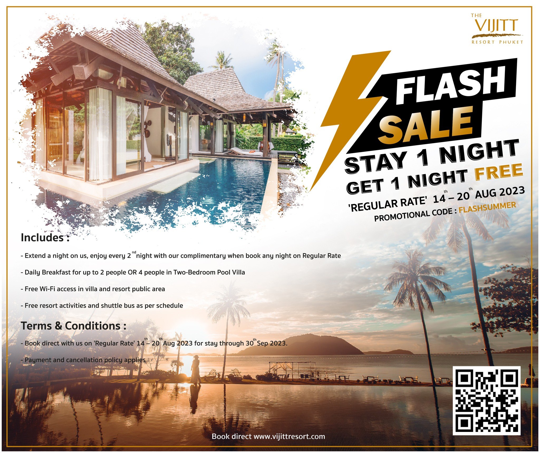 "Stay 1 night, get 1 night free!"Book August 14 th-20 th, 2023Stay until September 30 th, 2023 Special offer for those seeking an authentic private retreat experience. Click www.vijittresort.com