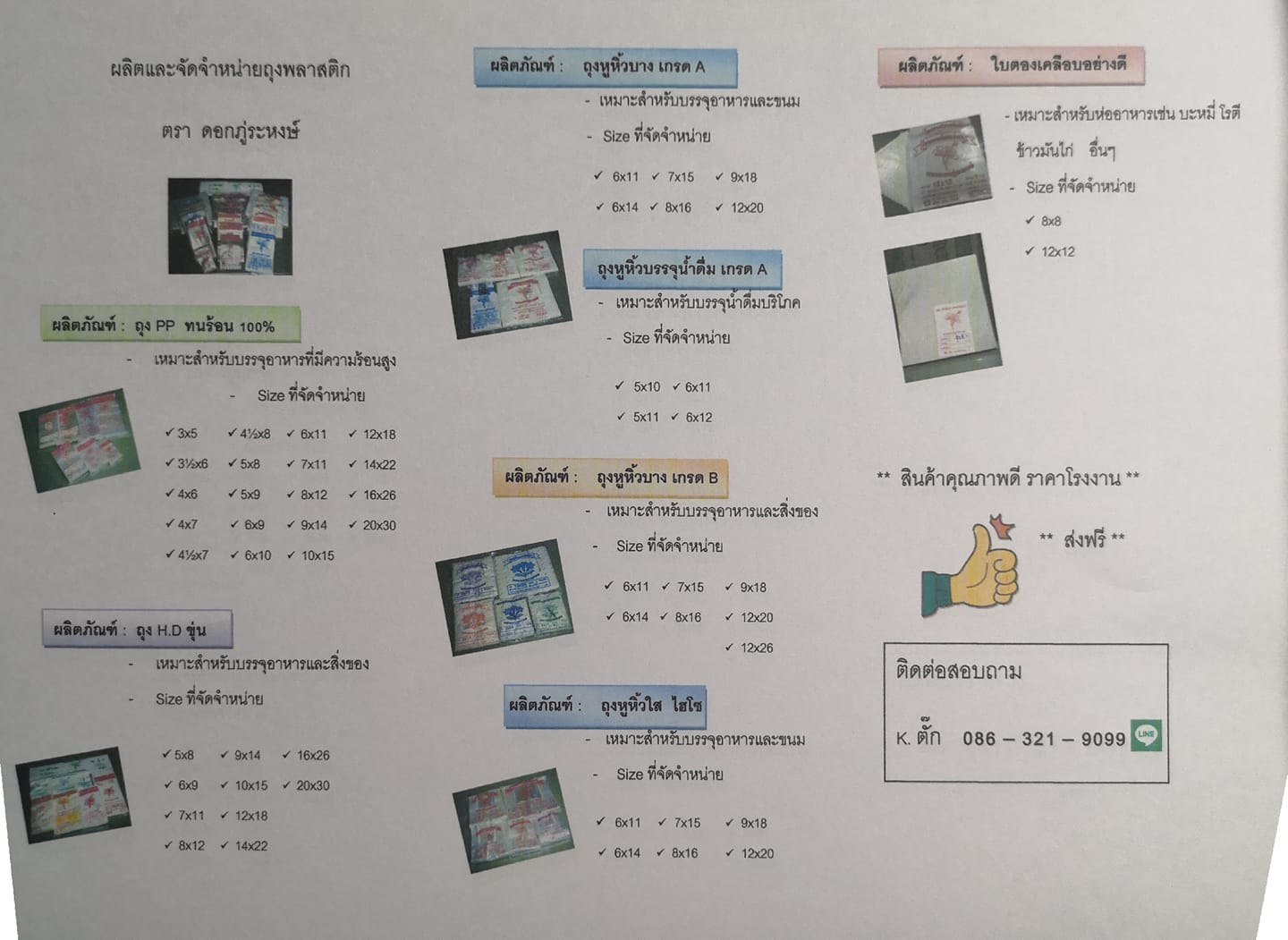 ผลิตและจัดจำหน่าย ถุงพลาสติกบรรจุอาหาร และ ใบตองเทียม ราคาโรงงาน บริการส่งฟรี